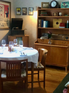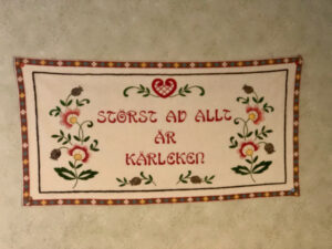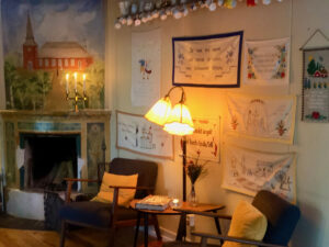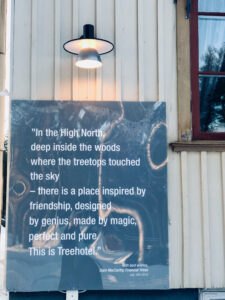 Pensionatet vi bodde på var som att tas tillbaka hem till mormor eller farmor med bonader med ordspråk på väggarna, trasmattor på golven och gamla lampskärmar. Det mesta är orört sedan det var ålderdomshem där på 30-50-talen och står i väldigt stor kontrast till de supermoderna trädrummen ute i skogen. Jag hade inte förväntat mig den kontrasten, så det blev nästan en lite schitzofren upplevelse – på ett väldigt bra sätt!